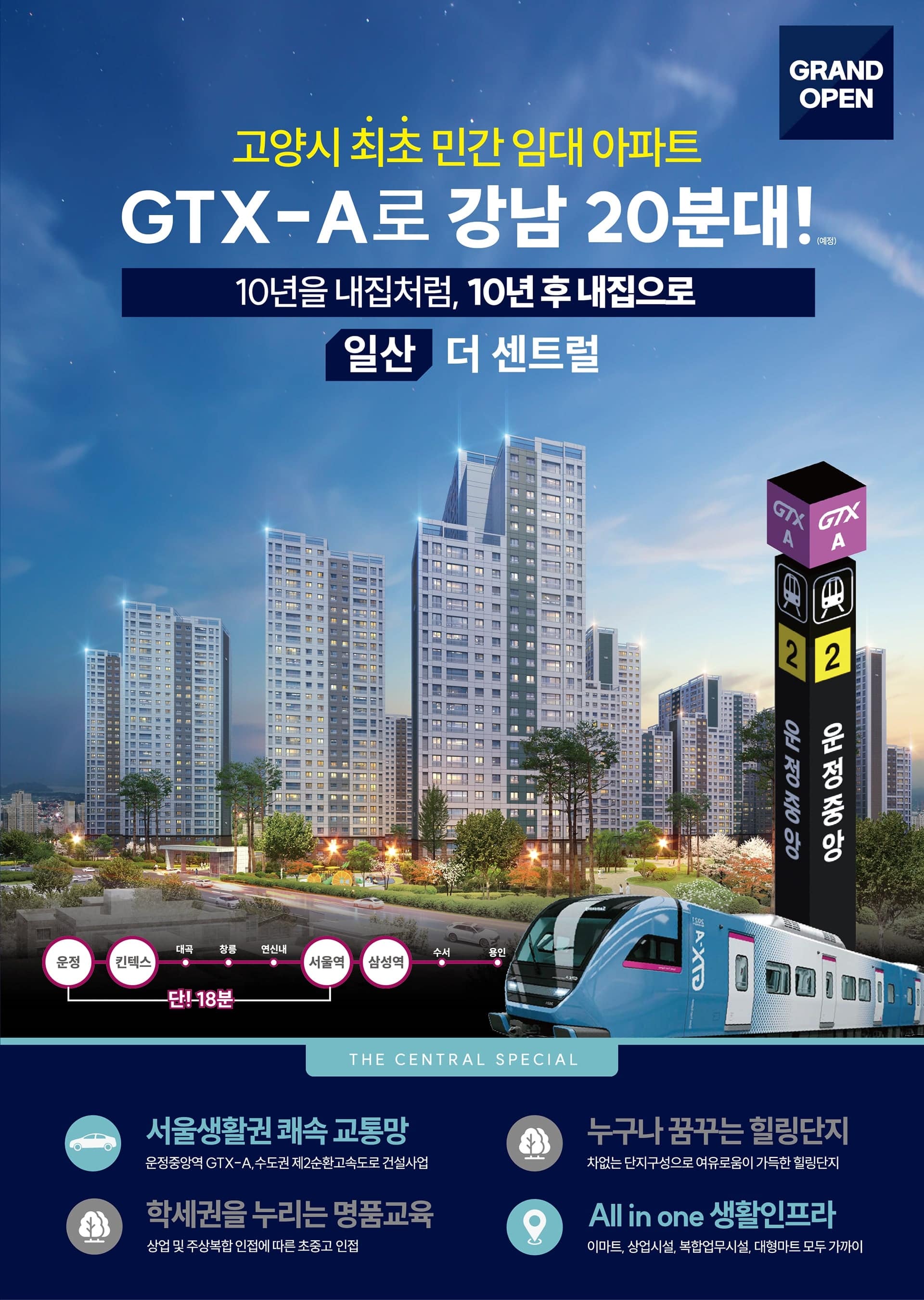 대도시 출퇴근의 기준이 바뀐 지금, 집을 고를 때 ‘몇 분 만에 도심에 닿는가’가 생활의 질을 좌우합니다. GTX-A 개통 구간이 넓어지면서 일산권도 체감 거리가 확 줄었지요. 그런 흐름 위에서 일산 더 센트럴은 교통·상품·커뮤니티를 고르게 갖춘 민간임대 대단지라는 점에서 눈길을 끕니다.